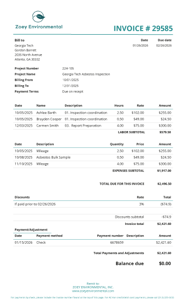 Invoice templates can now display a payment summary and balance due directly on the document. This shows applied payments, adjustments, and discounts. It allows for clearer communication with clients regarding what has been paid and what remains outstanding.