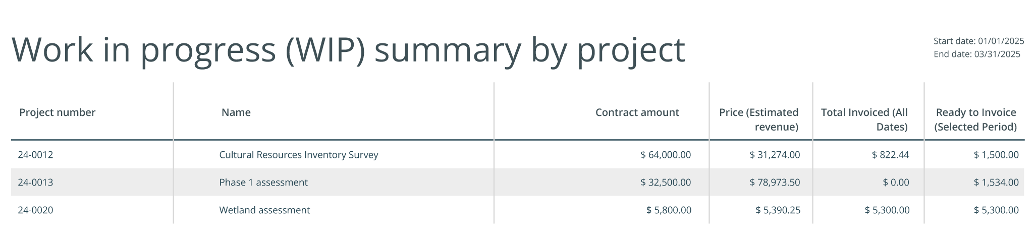 New report: Work in progress (WIP) summary by project